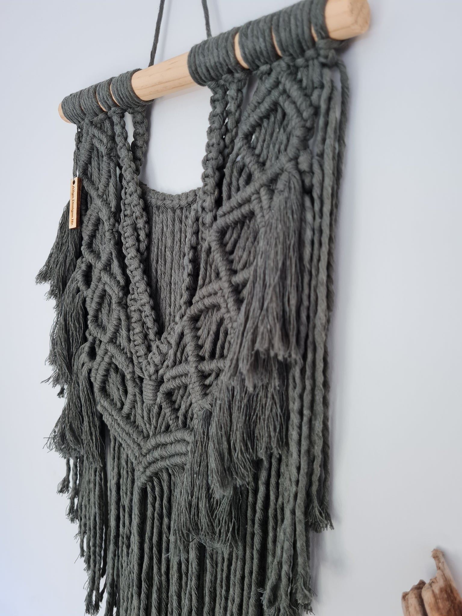 Hanging at 50cm off a 30cm wooden dowel, Forrest is made from beautifully soft dark green cotton cord which was produced in environmentally friendly facilities.