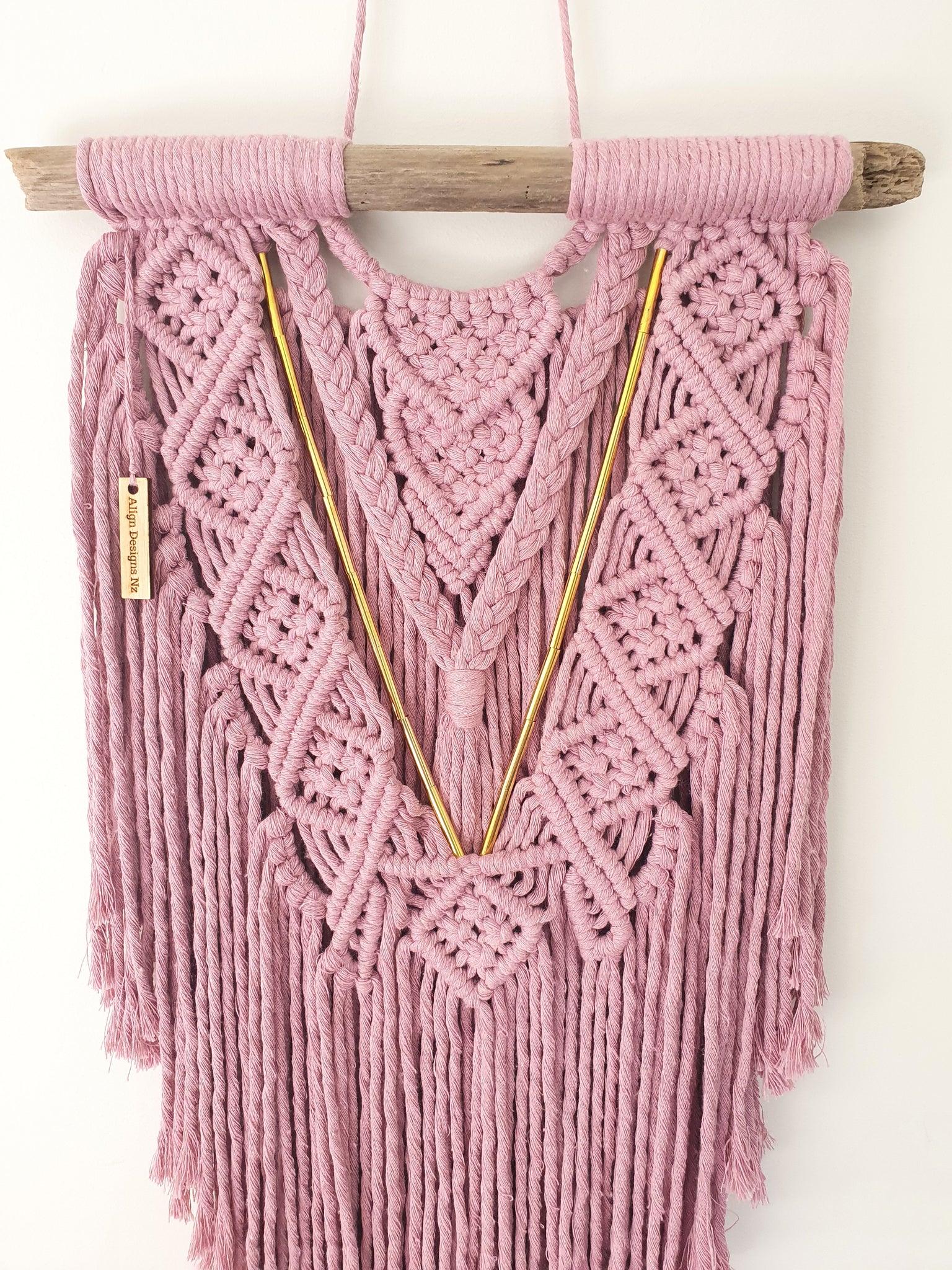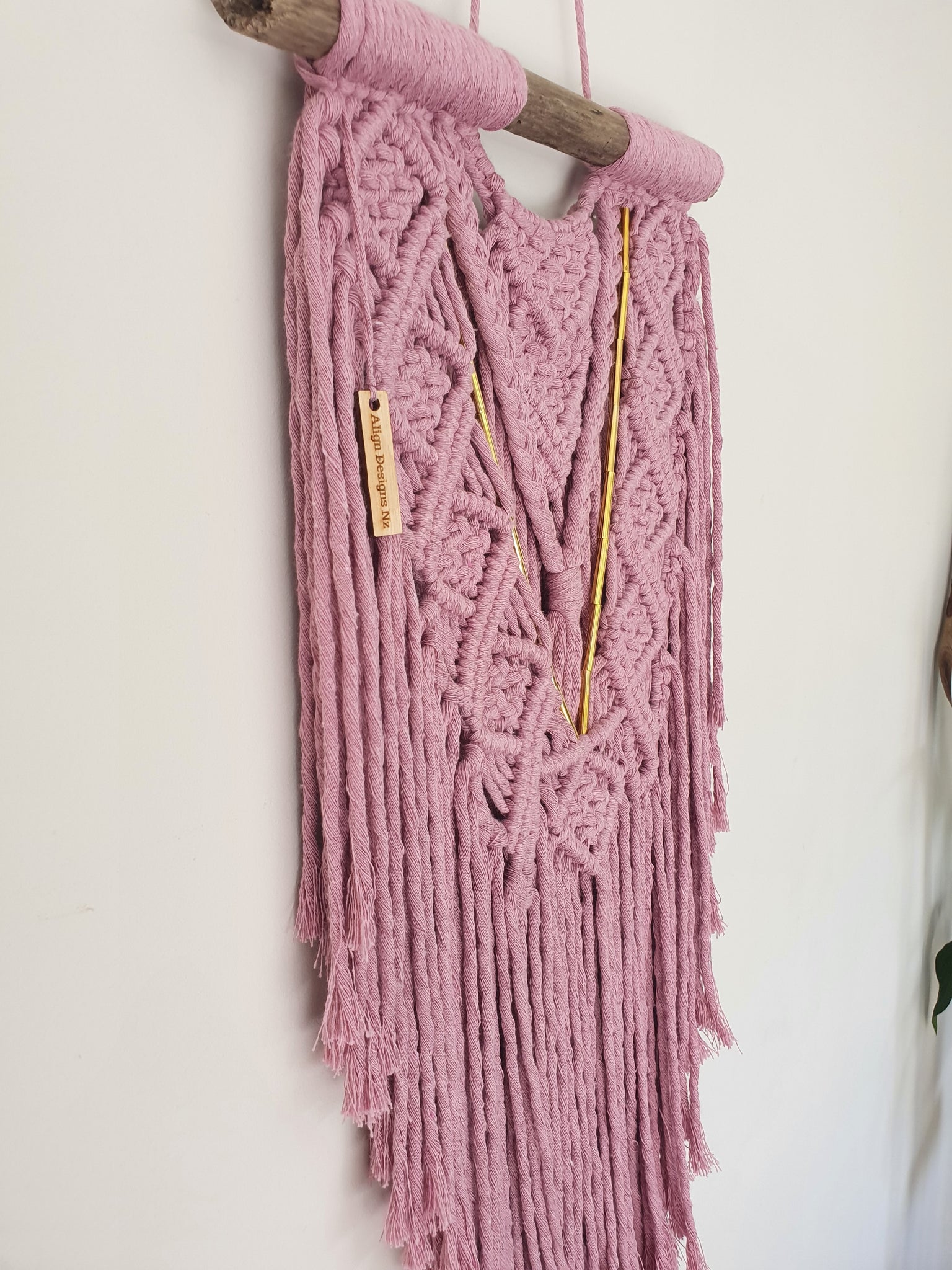 Knotted off a 32cm long piece of drift wood and hanging at 60cm long.